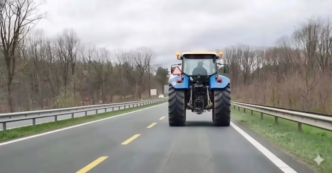 Ett svarDu kjører bak en langsom traktor som blinker til høyre. Hva gjør du?